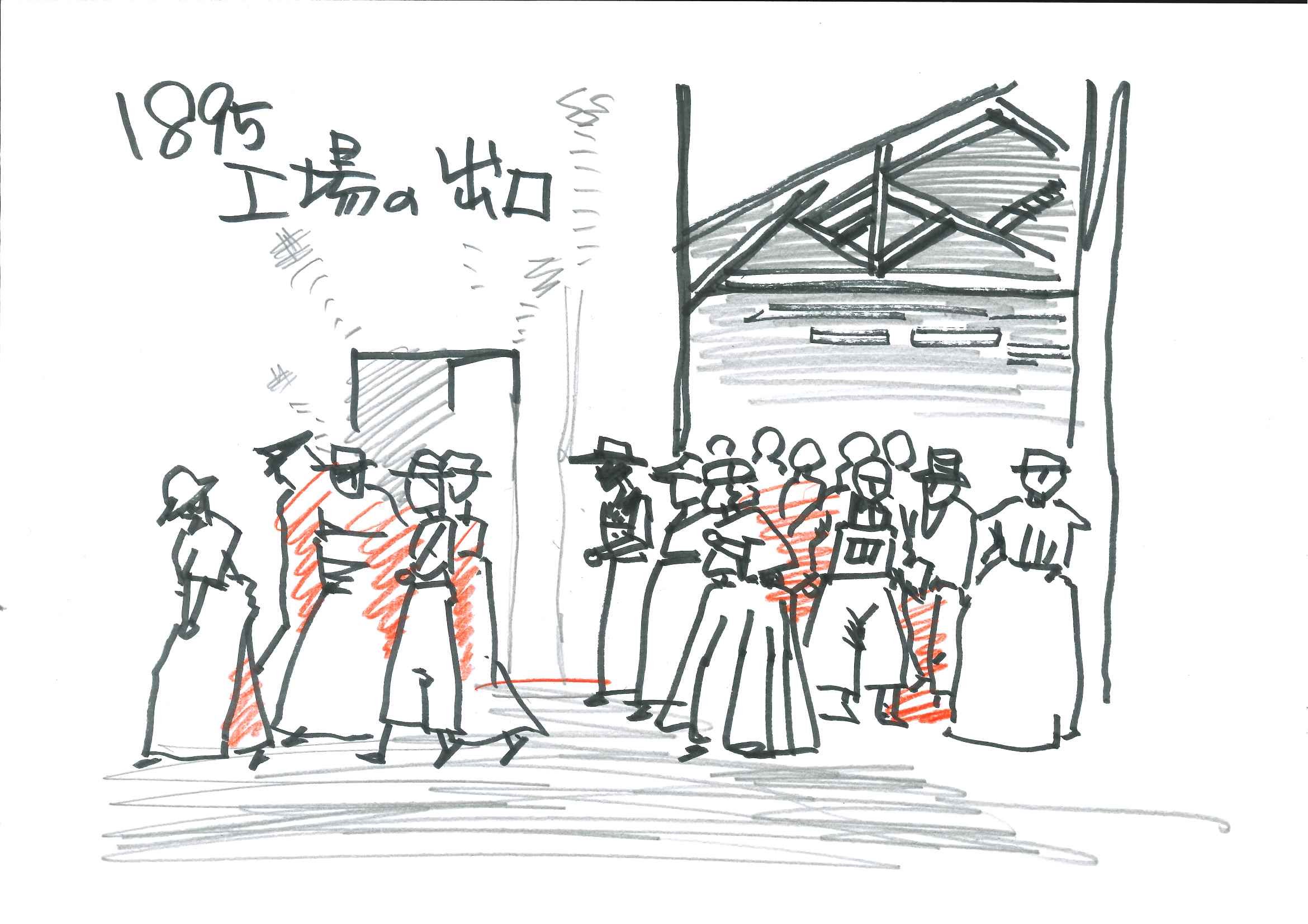 フランスのリュミエール兄弟が発表した世界最初の映画「工場の出口」の観賞です。