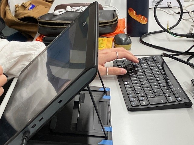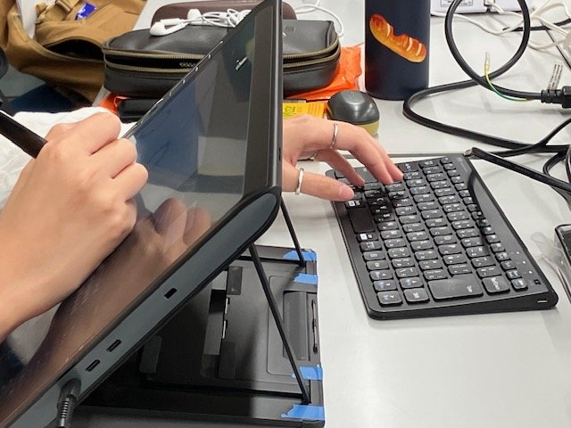 かつては、液タブ画面にペーパーライクを張り付けて、紙に描く感触を大切にしてタッチペンを走らせる学生がほとんどでしたが、今の学生は全員と言ってよいほどシート無しでタッチペンを走らせます。