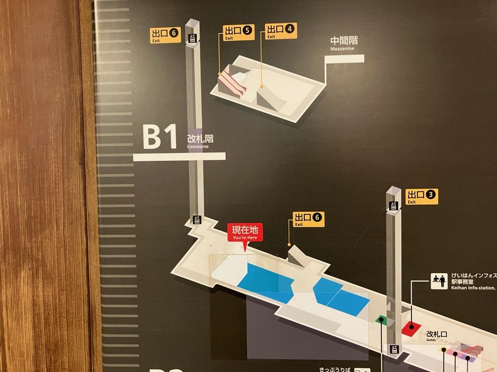 京阪大江橋駅地下1階改札口があるフロアで、出口番号4番5番6番を利用しての入場が分かりやすいです。