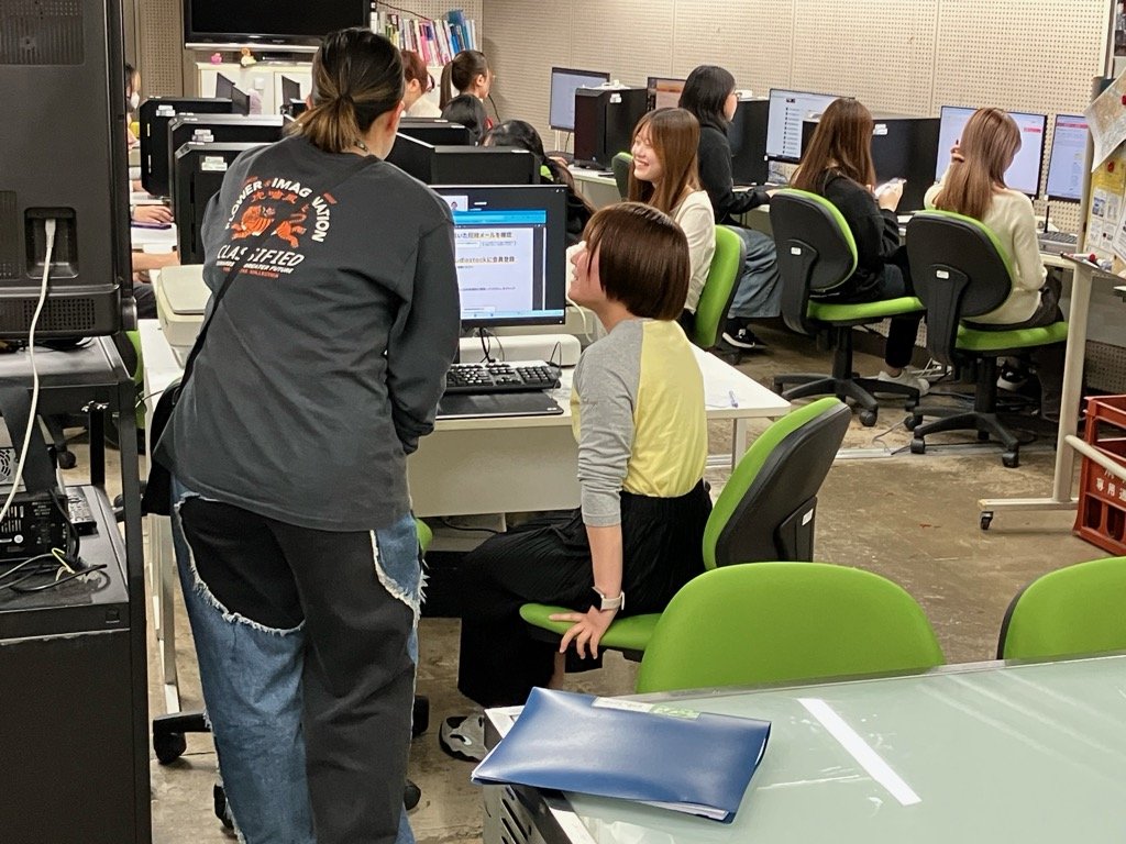 この日は、Audiostockスタッフの方からオンラインミーティングを通じて、学生たちが個々に登録手続きを行い、ルールや使用についての説明を受けました。