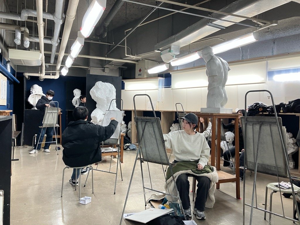 2年生進級後は人体デッサンに変わり、モデルを観察して全身をデッサンしたりクロッキーするのです。