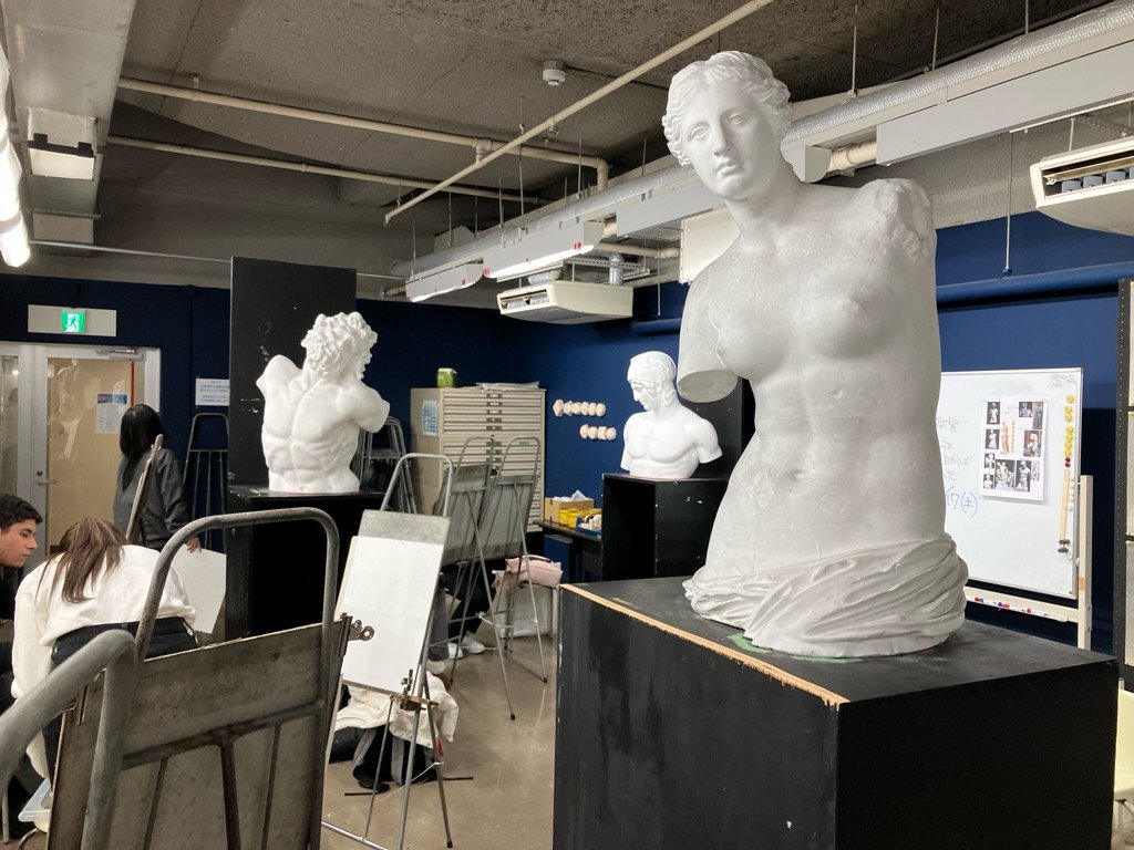 顔を中心に描いた小型胸像。次に取り組んだのは胸部と肩をも含めた中型の胸像。そして、最終課題は、頭・顔だけでなく胴体のボリュームを増やした半身像やトルソ像が控えています。