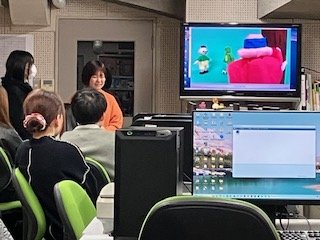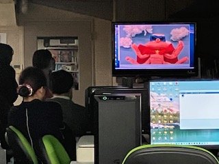 後期課題としてグループワーク制作したコマ撮りアニメーション制作の完成試写と合評会です。