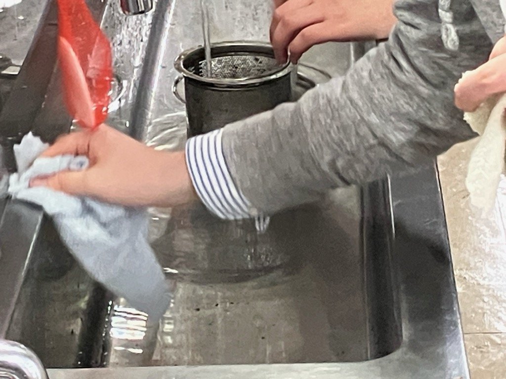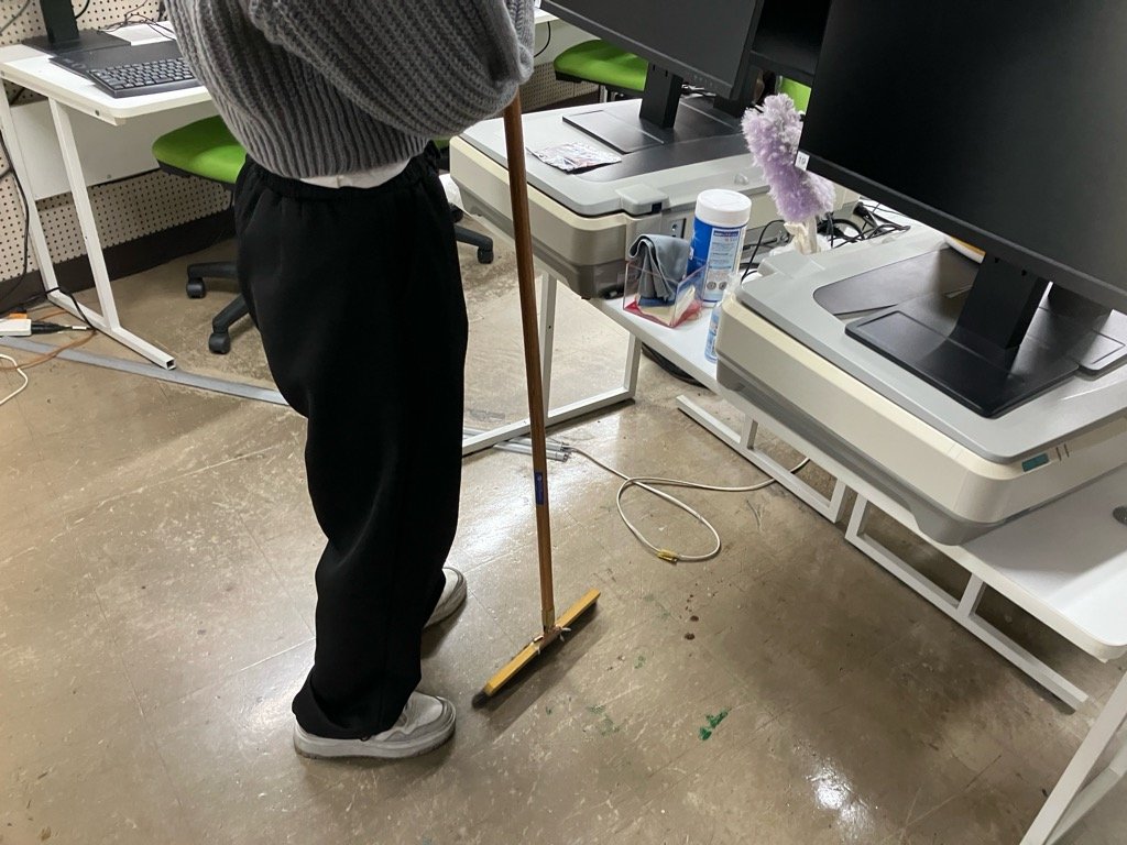役割分担して、決定した任務で1年間使用した教室と設備をきれいにしました。