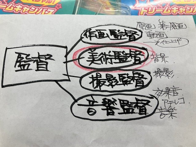 岡本先輩の美術監督を筆頭に、作画監督、撮影監督、音響監督、そしてアニメ監督と演出の役割と、アニメ制作の業界システムについて振り返りを行いました。