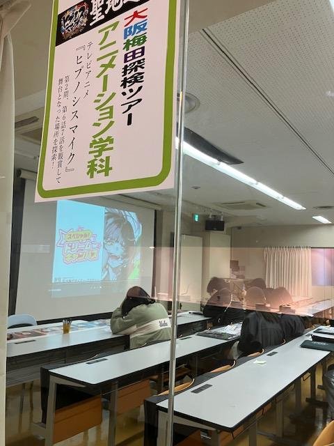卒業生が制作にかかわったアニメを見て、実際のロケーションを散策する企画でした。