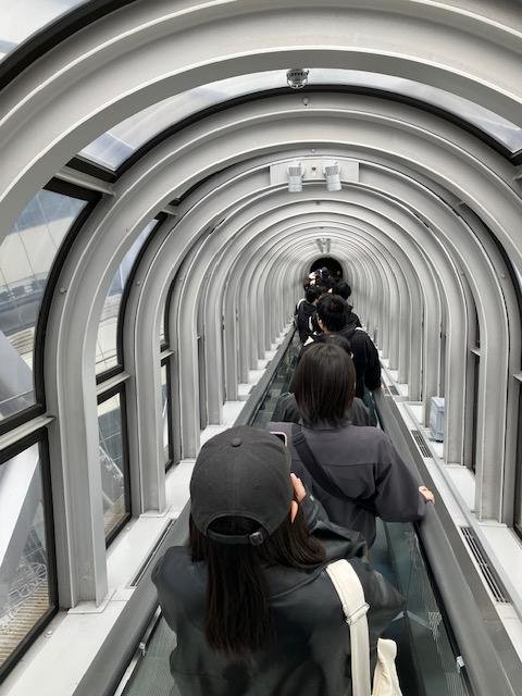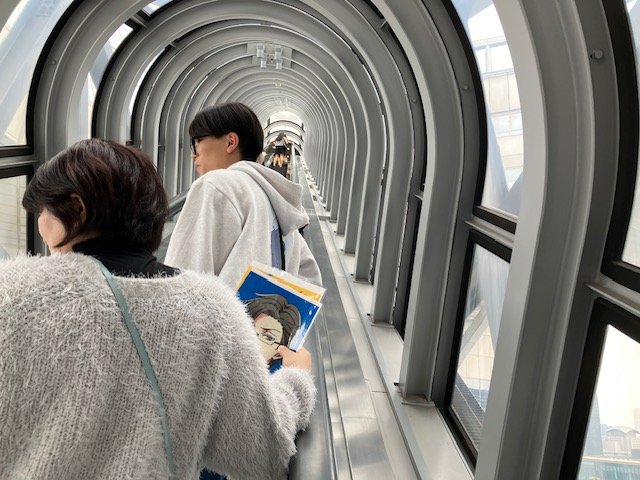 学校に戻ります。エスカレーターで降りるのは、登るときよりも怖さが増します。