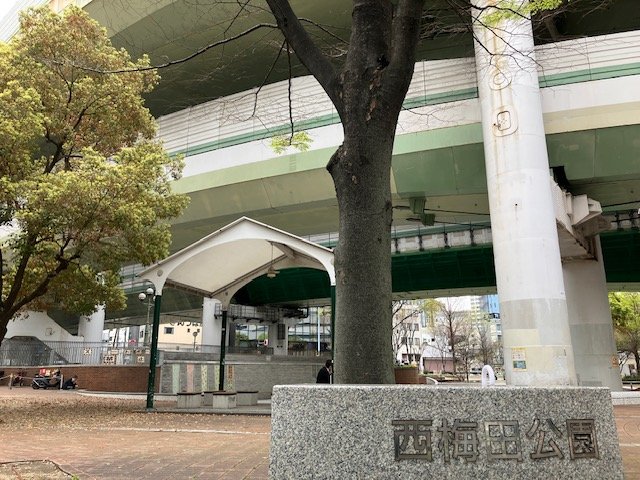 最初の聖地巡礼は、西梅田公園。